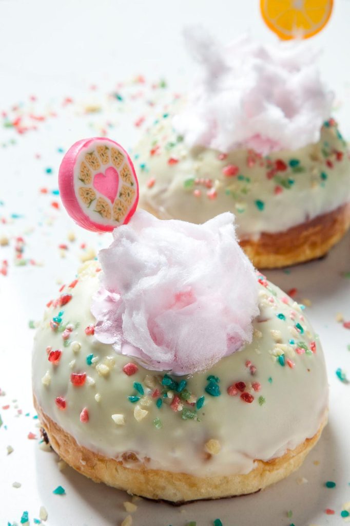 Pączek smażony z konfiturą z płatków róży z lukrem i skórką pomarańczową
