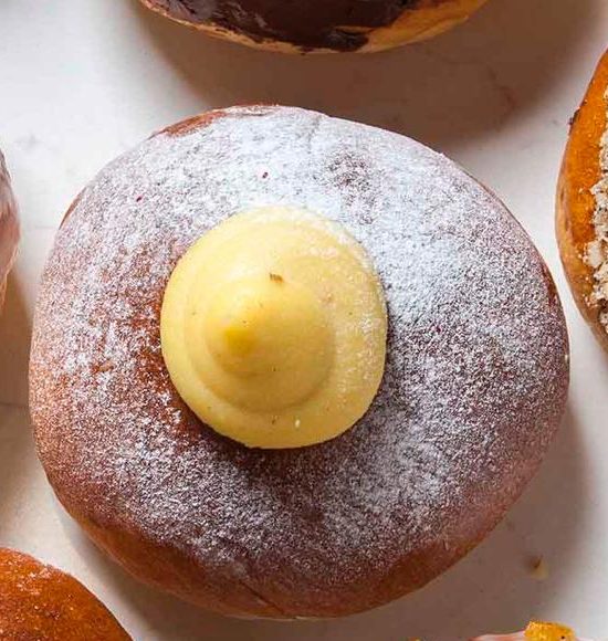 Pączek wypełniony aksamitnym, waniliowym kremem pâtissière