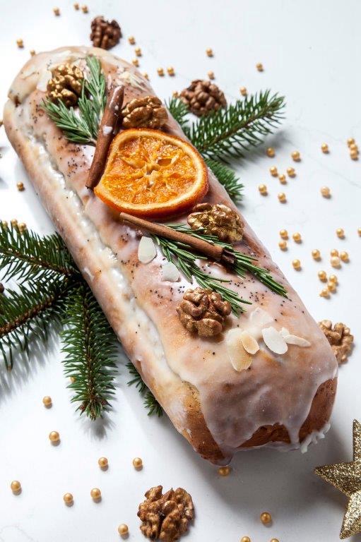 MAKOWIEC – wielokrotnie mielony mak, miód, orzechy włoskie, migdały, rum i bakalie.